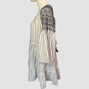 Free People White and Black Striped Lola Mini Dress Boho Size Small NWT