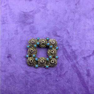 Vintage Stylish early 1950 Gold and Turquoise Brooch