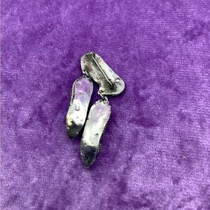This piece is fantastic. Its detailed design and gems set in silver tones.The shoes are stamped 900 which represents 900 of 1000 parts silver. Collectors piece from my closet. The brooch is 1 and 1/2 inches long. The charms are detailed. You love this for its rarity and age. Very boho gypsy. It's has no cleaning.