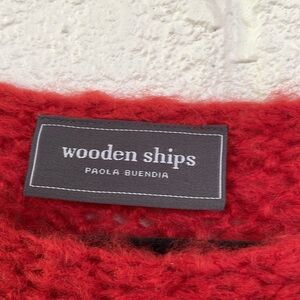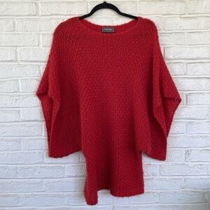 Wooden Ships Red Open Weave Dolman Batwing Sleeve Pullover