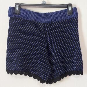 Zara Knit Blue & Black Sheer Whimsigoth Grunge Elastic Waist Shorts Size Small