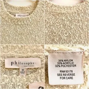 NWT Philosophy Cream and Tan Long Sleeve Knit Sweater Size Medium