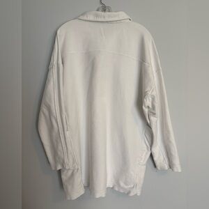 Free People Willow Tunic Polo M Oversized Dolman Sleeve Button Pocket Top White