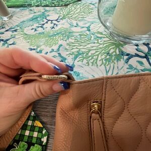 Genuine leather in excellent condition. See pics for measurements. 16” adjustable shoulder strap. Very soft quilted leather purse with no dirt marks or holes. Multiple interior pockets. Interior is clean. Comes from smoke free home. The color of the purse in the first pic is the actual color. Taupe.