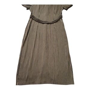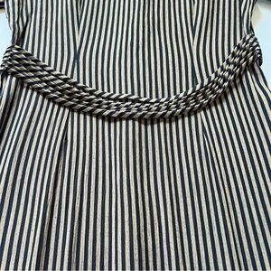 VINTAGE MISS DORBY Striped Fitted Midi Dress | Size M | Navy & Tan | 80s Office