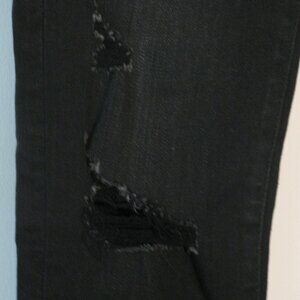 American Eagle black jeggings in size 4 27Waist. Labeled next level stretch by the manufacturer, these super hi-rise jeggings are perfect for any casual occasion. Skinny leg style black distressed destroyed have two pockets in front and two patch pockets in back.Ankle length. Made from 71% cotton, 19% recycled polyester, 8% viscose and 2% spandex, machine wash.