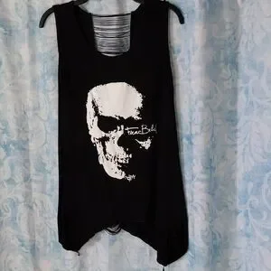 Edgy and stylish, this black top features a bold skull graphic. Perfect for adding a touch of rock to your wardrobe. Great condition. Super soft