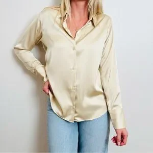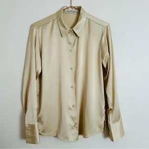New Abercrombie & Fitch Cream Satin Elegant Long Sleeve Button Down Shirt
