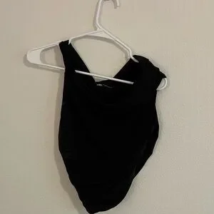 This elegant black off-shoulder top is perfect for any occasion. Its sleek design offers a sophisticated look.