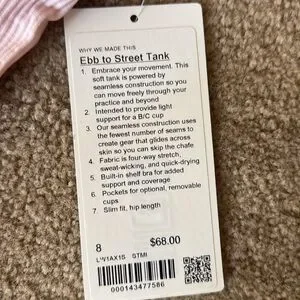 NWT lululemon Ebb to street tank 8