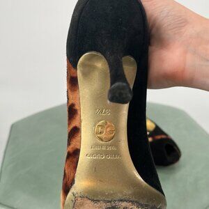 VINTAGE Dolce and Gabbana Leopard Print Peep Toe Heel 37.5. 3 inch heel.