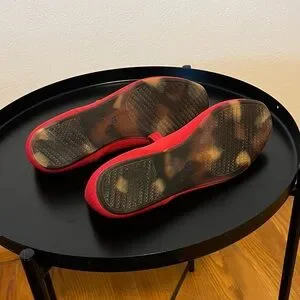 Chic red flats with a stylish strap. Comfortable and versatile for any outfit.