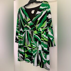 Tiana B Women’s Blouse XL Multicolor Green Black Top V neck Wrap Tropical Style