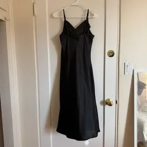 Chic black midi dress by bebe. Sleek and versatile. Perfect for any occasion.