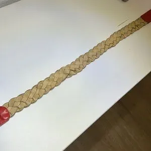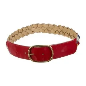 Red Leather Multicolor Red, Yellow, Blue and White Woven Leather