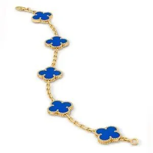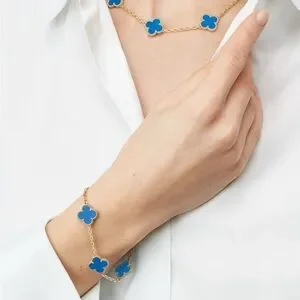Van Cleef & Arpels Blue and Gold Agate Clover Bracelet