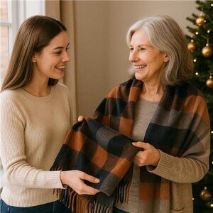 Women's Faux Cashmere Plaid Scarf - Ultra Soft, Warm Winter Wrap with Classic