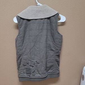Stylish vest with soft sherpa lining. Features button closure and multiple pockets. Perfect for layering.