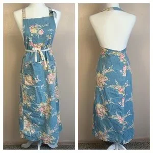 Cool 90s vintage denim floral apron maxi wrap dress by RL. Great vintage condition…
