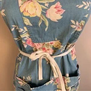 Ralph Lauren VTG 90s Blue Label Floral Denim 90s Apron Wrap Dress