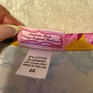 Pinup Couture Yellow and Purple Floral 3/4 Sleeve Dress