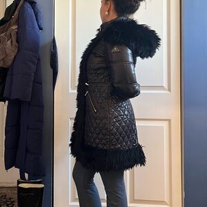 Chic black puffer with faux fur trim