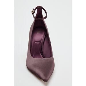Pink stiletto heel. Satin effect. Buckled ankle strap closure. Pointed toe. From ZARA, in US size 7.5 (EUR 38). New with tags. Sold out in stores.