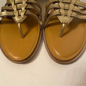 DIANE VON FURSTENBERG SHOES SANDALS THONG FLAT GLADIATOR STUDS GOLD LEATHER
