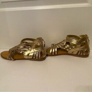 DIANE VON FURSTENBERG DVF WOMENS SANDALS SHOES GOLD LEATHER GLADIATOR THONG STUDS SIZE 8 M