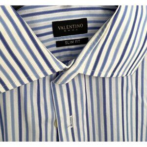Valentino Roma Shirt Mens 15.5 42 Slim Fit Medium M Long Sleeve Button Up Blue