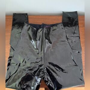 Black polyurethane leggings. 11 3/4” high rise.