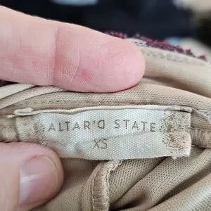 Keywords: Altar'd State skirt, maxi skirt, bohemian skirt, floral skirt, embroidered skirt, festival skirt, cream skirt, purple skirt, XS skirt, boho chic, flowy skirt, womens skirt, casual skirt