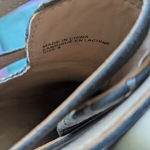 Anthropologie Suede Block Heel Ankle Boots Gray Taupe Cutout Strap Size 8
