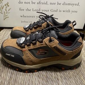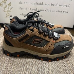 Skechers Men's Black and Brown Work Shoes NWT Men SZ 9.5. Box9