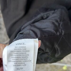 NWOT Vince Wool Lamb Leather and Rabbit Fur Coat Luxury Elegant Sz XS. This coat is new without the tags but does have some fuzzing clinging on I have lint rolled it quite a bit but it may arrive with some stray hairs I am in a pet friendly household non smoking. This gorgeous wool trench coat is lined with real lamb leather and has a real rabbit fur collar. It has a roomy fit I am a medium and it fits me in a fitted way.