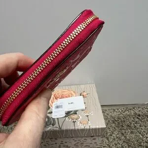 Elevate your look with this vibrant pink Coach wallet. Features a stylish zip-around design. Perfect for adding flair to any ensemble.