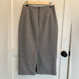 Black and white gingham pattern pencil skirt that is classic and chic. Excellent vintage condition. Size 10 waist measures 14-1/2 inches across, hips measure approximately 20 inches across and length is 31 inches.