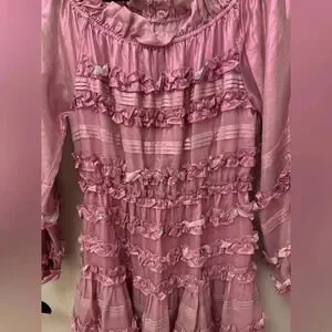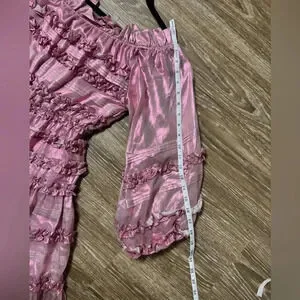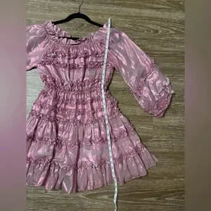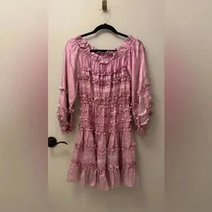 NWT Cynthia Rowley Ella Silk Metallic Foil Ruffle Mini Dress Metallic Blush XS