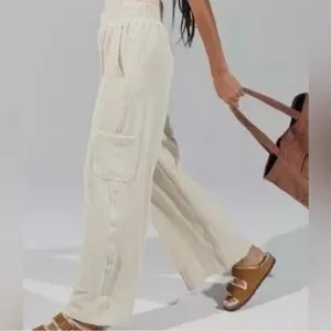 Stylish ivory wide-leg pants from Urban Outfitters. Perfect blend of comfort and fashion.