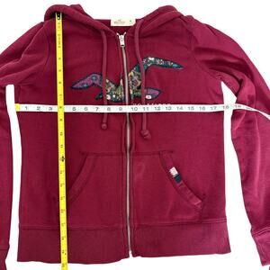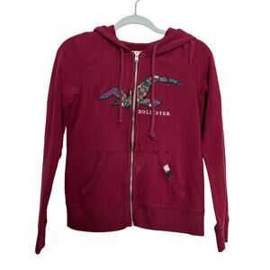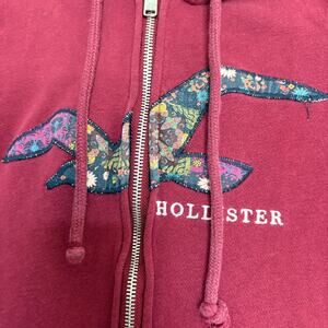 Hollister burgundy zip hoodie medium floral logo Y2K vintage cozycore See pics