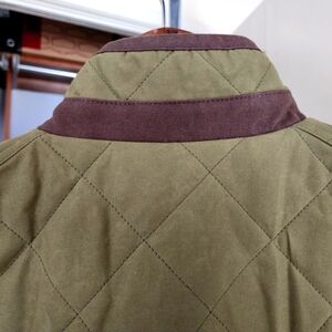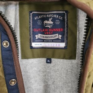 Elevate your wardrobe with this stylish olive quilted vest from Atlantic Rancher Company. Perfect for layering, it combines warmth with a timeless design. 100% cotton Dry Handle fabric is breathable and weatherproof. Super soft fleece lining. Serial No. L00238. Appears to have never been worn.