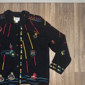Chico's Black Cardigan with Multicolor Embroidery Sweater Women’s Size 2