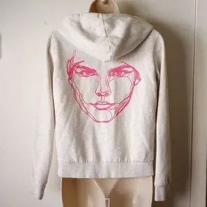*50off3* Avicii H&M Zip Hoodie Graphic Sweatshirt S Light Gray Hot Pink