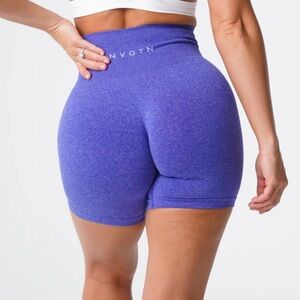 NVGTN electric blue pro seamless shorts in a woman size L. Has a little nail polish stain shown in last image that I can’t get out.