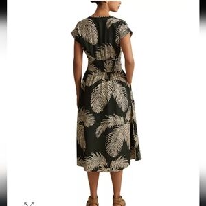 Reiss Leaf Print Colby Ruched Waisted Midi Dress