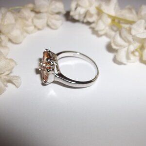 Ring US Size 8.25 925 Silver with Peach Rhinestones Woman Girl Jewelry Band D064