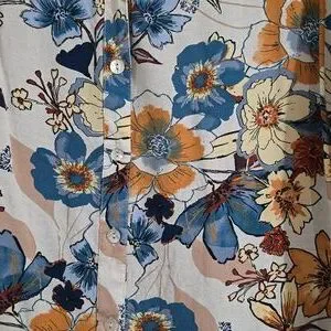 EUC-Floral Button-Up Blouse - Blue and Yellow