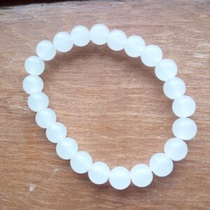 This elegant white beaded bracelet adds a touch of sophistication to any outfit. Perfect for any occasion.