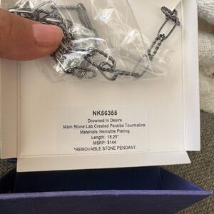 Stunning and unique statement piece featuring a lab-created Paraiba Tourmaline in a cushion cut, surrounded by shimmering accents. The pendant is removable for versatile styling.