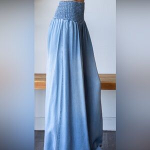 Stylish wide leg jeans. Comfortable smocked waistband. Perfect for casual wear.